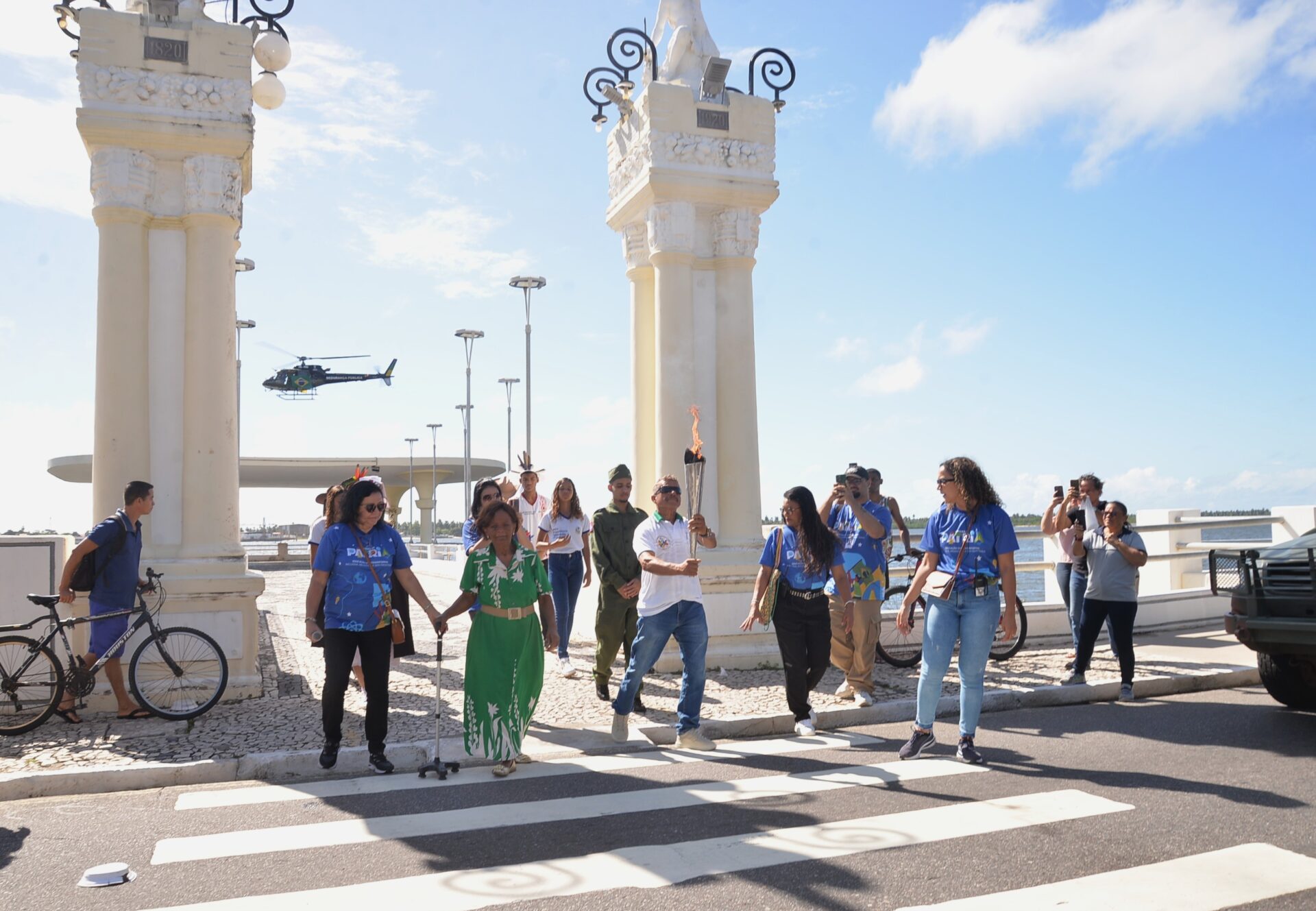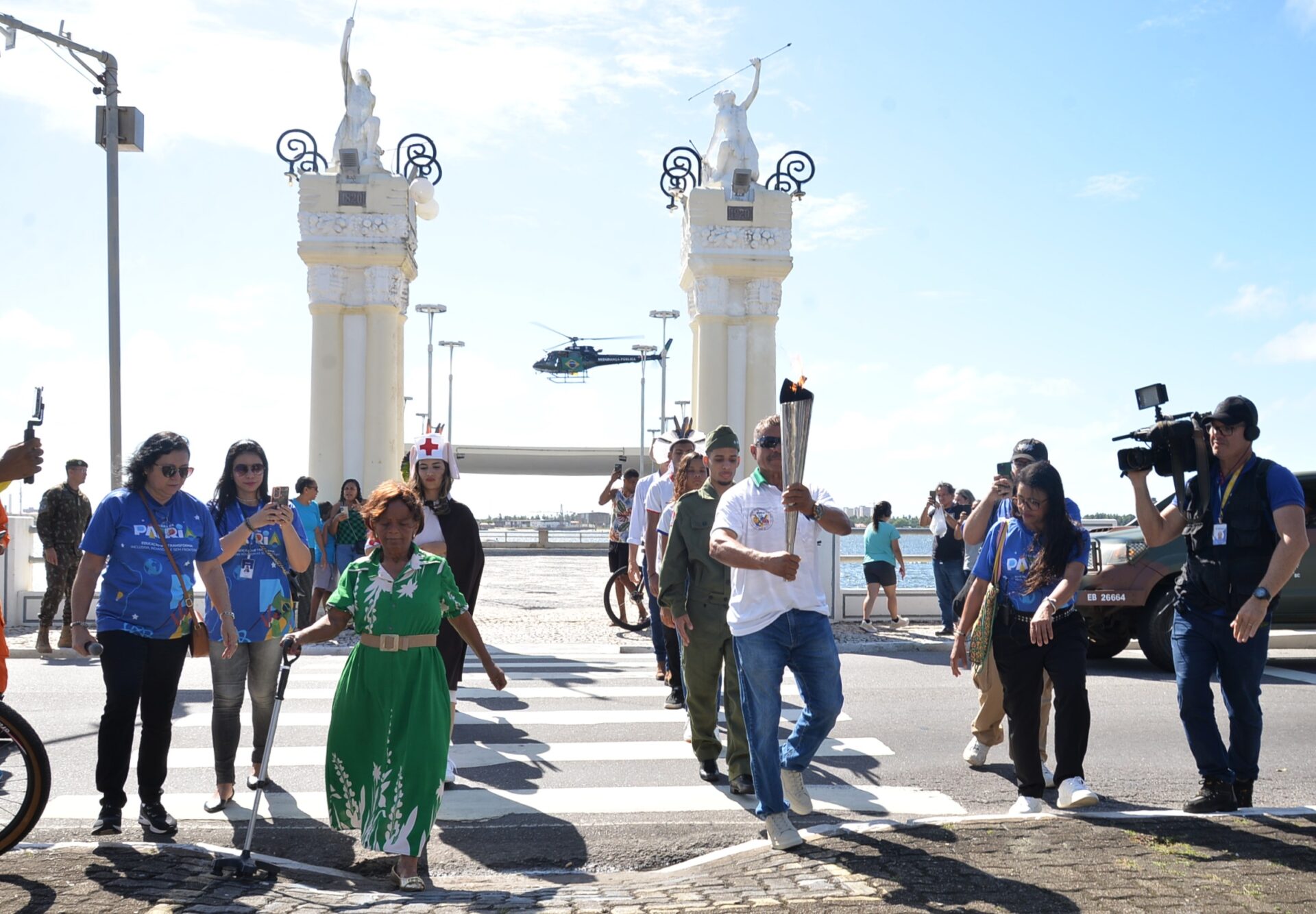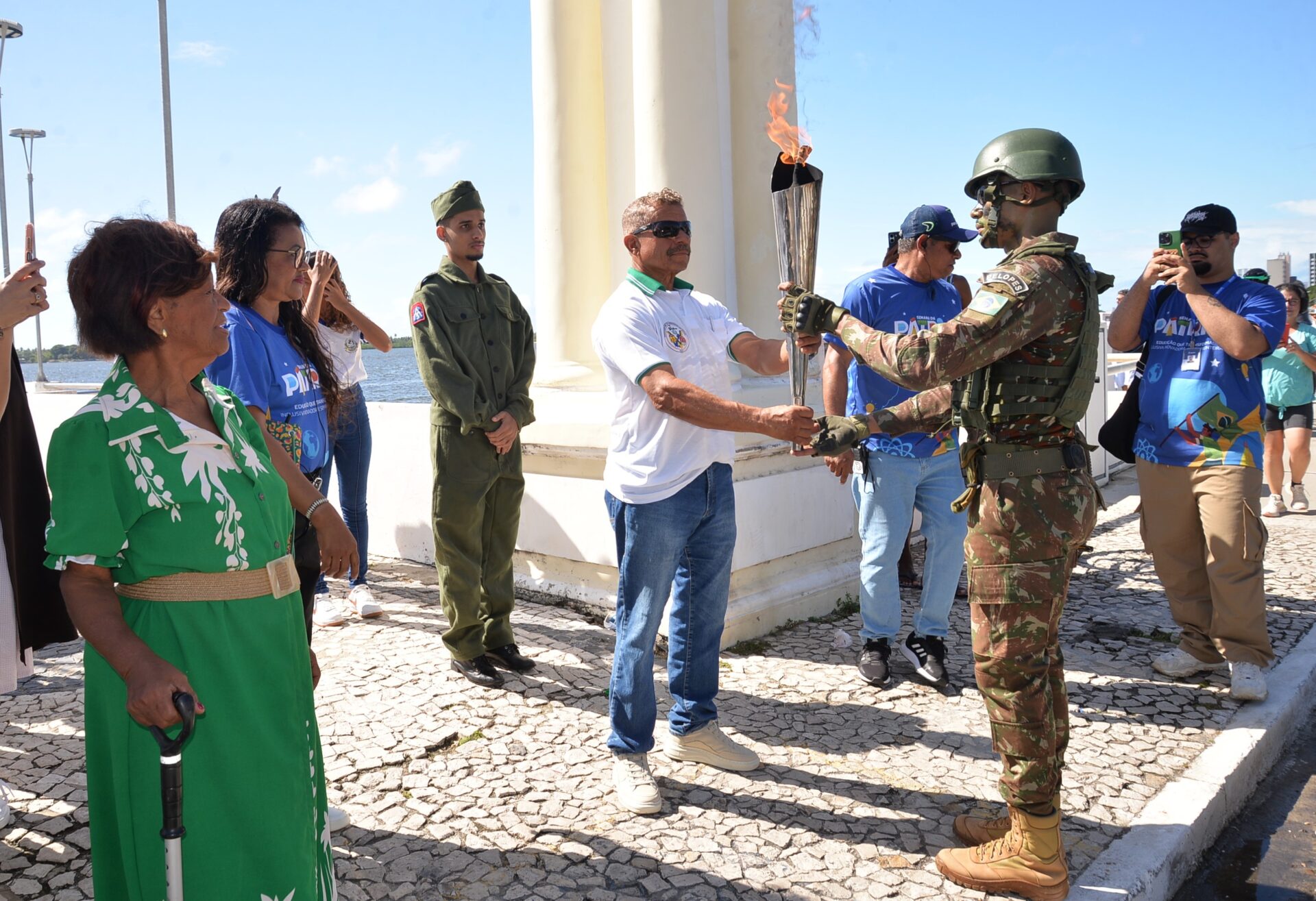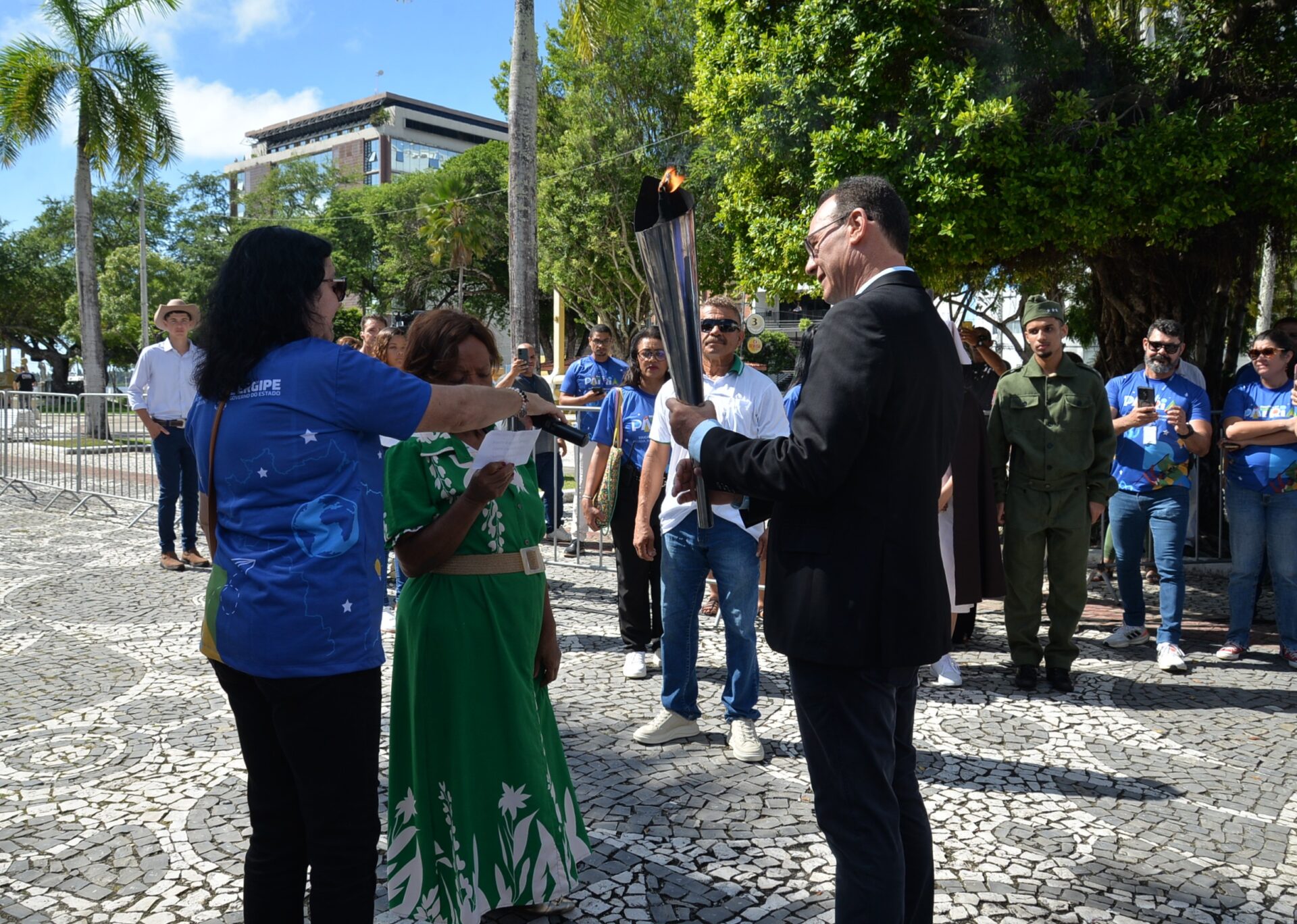 Ao fim do percurso, os filhos de combatentes da 2ª Guerra Mundial, Ortência Maria Ferreira Garcez e José Vicente Barreto de Oliveira, conduziram a tocha até o vice-governador do Estado de Sergipe e secretário de Estado da Educação, Zezinho Sobral, que realizou o acendimento da pira.