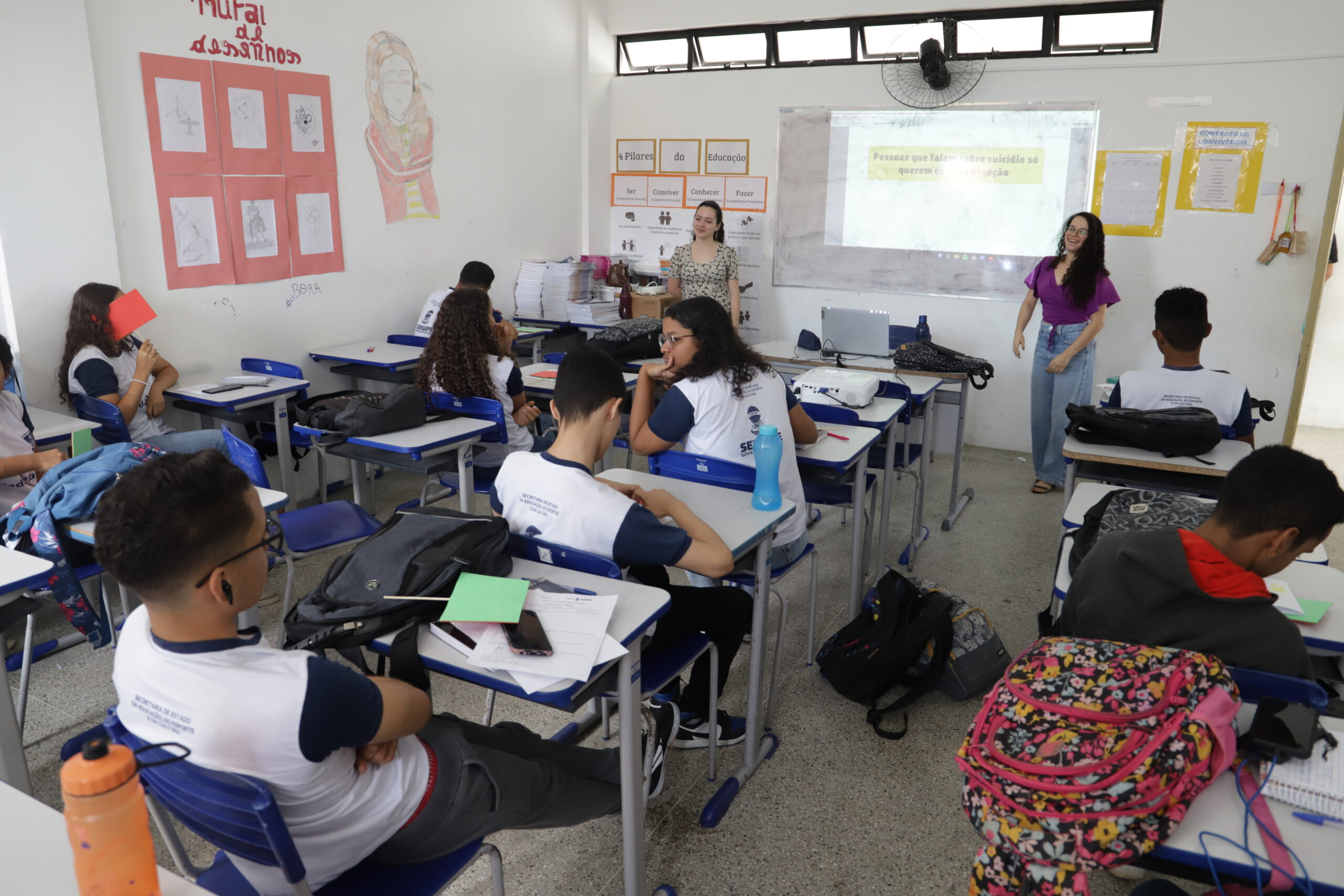 Opinião semelhante teve o seu colega Cauã Levi Conceição dos Santos. “Existem pessoas que podem estar com depressão ou com outros problemas, que não se sentem com vontade de viver. Aprendi que temos de estender a mão para quem precisa de alguma ajuda emocional”, afirmou. Já a aluna Mislayne dos Santos declarou que “é interessante a gente participar dessa oficina, porque pode haver pessoas dentro das salas de aula que estão passando por alguma dificuldade, mas não falam. Como a gente fica o dia inteiro na escola, uma palestra dessa ajuda bastante os estudantes a se abrirem mais”. A ação também foi realizada com alunos da Escola Estadual Poeta Garcia Rosa.