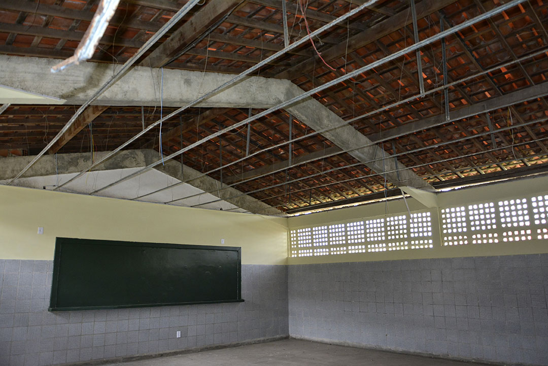 Para que fosse possível realizar uma reforma completa em toda a estrutura física da Escola Hermínia Caldas, os estudantes precisaram ser transferidos para outro prédio, na mesma comunidade.